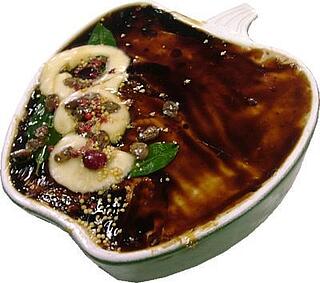 Mittelgrob gekörnte Leberpastete mit Äpfeln, ofengebacken, streichfähig, Keramikschale in Apfelform, folienverschweißt, 2 Stück im Karton.